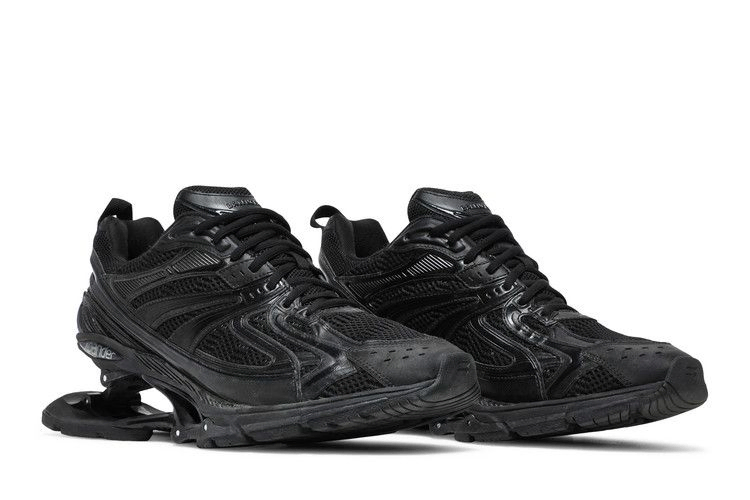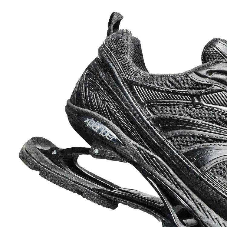 Модель Balenciaga X-Pander 'Black', дебютировавшая в рамках коллекции готовой одежды люксового модного дома весной 2021 года, представляет собой монохроматический вариант обуви для бега в стиле Демны Гвасалии, сочетающий в себе многослойную ретро-эстетику и экспериментальную обработку. Последняя подчеркивается приподнятым пружинящим каблуком с 40-миллиметровым сводом, который сжимается и разжимается при каждом шаге. Верх без кожи состоит из дышащей сетки и синтетических накладок, которые чередуются между глянцевой отделкой и обветренной, обжитой эстетикой. На прорезиненном язычке выбита надпись "Balenciaga", а размер обуви указан на задней части каблука.
