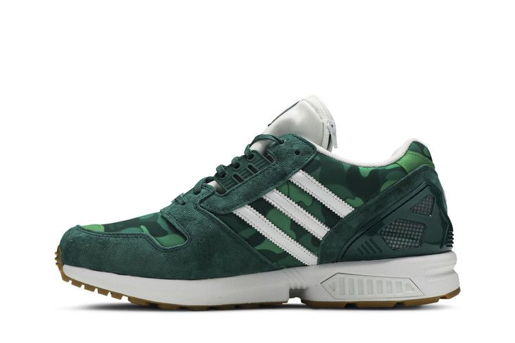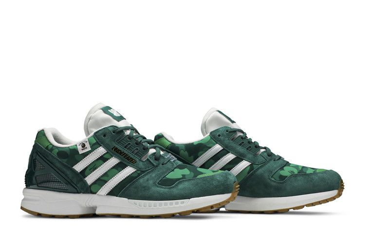 Модель BAPE x Undefeated x adidas ZX 8000 'A-ZX Series - Green Camo' представляет собой одну из двух расцветок ретро-бегунков, созданных в сотрудничестве с новаторским японским стритвир-лейблом и влиятельным ритейлером в Лос-Анджелесе. Фирменный камуфляжный принт BAPE выполнен в разных зеленых оттенках на текстильном верхе, дополненном тональными замшевыми накладками и акцентирован уникальными элементами брендинга. В их числе золотисто-металлический логотип Undefeated на боковом веке и несовпадающие логотипы Ape Head и Five Strike на язычке и пятке. Полупрозрачная подошва из резины обеспечивает надежное сцепление с поверхностью.
