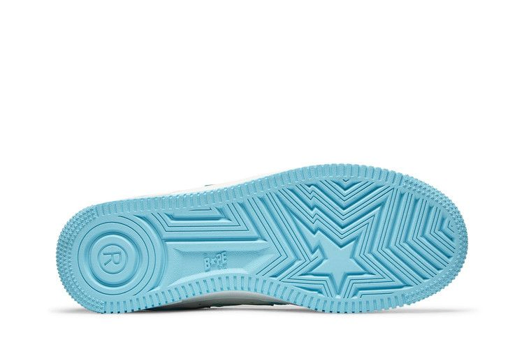Bapesta 'Sax', выпущенные в рамках трехкомпонентного "Pastel Pack" от A BATHING APE, имеют гладкий кожаный верх, который сочетает в себе белую основу с контрастными пудрово-голубыми накладками. Мятно-зеленые акценты расставлены на логотипе Bape Sta и плетеных шнурках, последние украшены посеребренным кружевным украшением Ape Head. Логотип в виде обезьяны повторяется на тисненой графике, нанесенной на боковую пятку. Кроссовки опираются на прочную резиновую подошву с белыми боковинами и синей резиновой подошвой.
