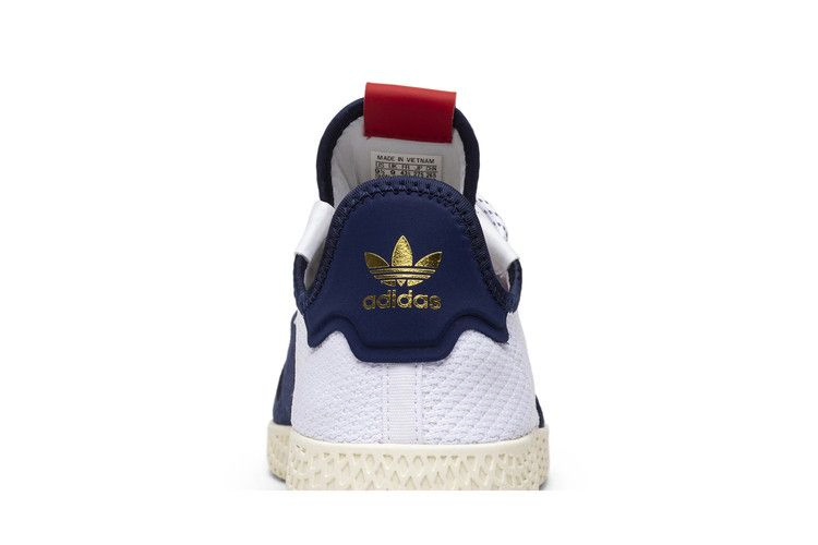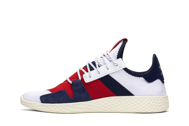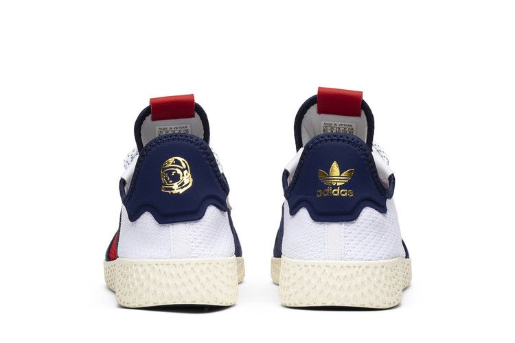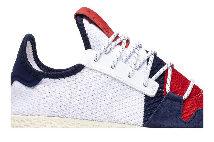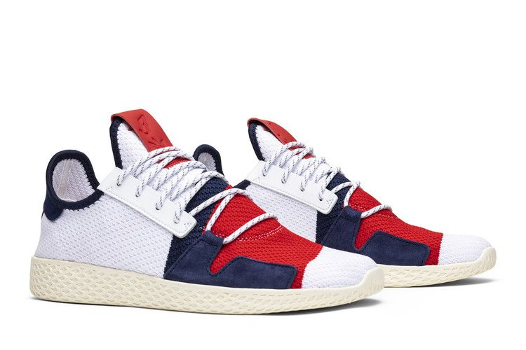 Фарелл и его марка одежды Billionaire Boys Club в партнерстве с adidas создали фирменные Tennis Hu V2, выполненные в патриотической цветовой гамме из материала Primeknit. Замшевые акценты украшают носок и пятку, а кожаный логотип на язычке украшен совместными значками adidas и Billionaire Boys Club. Оттенок Off-White на промежуточной подошве придает обуви винтажный вид, который изначально был вдохновлен упрощенным дизайном Stan Smith.