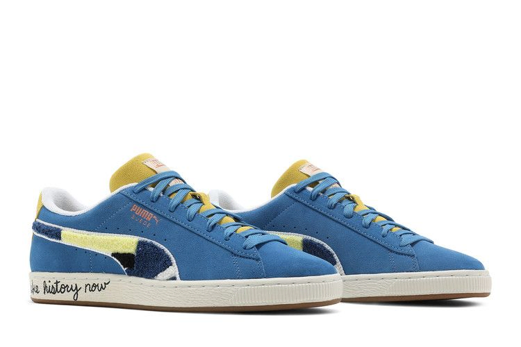 Модель PUMA Suede Classic 'Star Sapphire' разработана в сотрудничестве с Black Fives Foundation, некоммерческой организацией, занимающейся сохранением и изучением истории афроамериканцев в баскетболе до НБА. Модель выполнена из синей замши с синельной полосой в желтом, черном и темном цветах. На желтом замшевом язычке пришита бирка с двойным брендингом PUMA и Black Fives. Надпись "Make history now" ("Твори историю сейчас") на белой резиновой подошве, укрепленной подошвой из резины.
