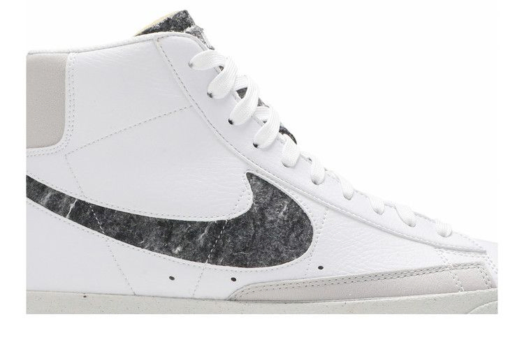 Модель Nike Blazer Mid '77 Vintage "White Light Smoke Grey", выпущенная в рамках серии "Recycled Wool Pack", представляет собой экологичное воплощение одной из самых ранних баскетбольных моделей бренда. Верхняя часть из белой искусственной кожи изготовлена из вторсырья и дополнена язычком из вспененного материала, а боковая часть Swoosh изготовлена из 100% переработанного войлока. Дополнительные переработанные материалы использованы в носочной части цвета вольт и подошве Nike Grind, в которой использована резина, собранная с фабричных цехов.