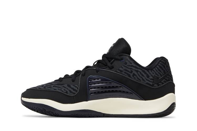Взяв свое название от медиасети Кевина Дюранта, Nike KD 16 "Boardroom" представляет баскетбольные кроссовки в неприметной цветовой палитре. Верх из сетки с узором в серо-черных тонах покрыт накладками из синтетического нубука и крыльями из TPU для фиксации стопы. На язычке слева изображен логотип 35V, медиа- и инвестиционной компании, основанной Кевином Дюрантом и его агентом Ричем Клейманом, а на носочной части - брендинг Boardroom. Кроссовки имеют промежуточную подошву Cushlon с амортизацией Zoom Air в передней части стопы.
