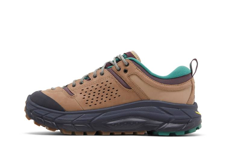 Модель Bodega x Hoka Tor Ultra Low GORE-TEX 'The World at Large' одевает силуэт для активного отдыха в цвета американского Юго-Запада. Верх из водонепроницаемого материала GORE-TEX песочного цвета, кожа Sierra buck и тиловая сетка, не пропускающая влагу, на мягком воротнике и язычке. Заднюю часть пятки украшает значок Bodega, а на стельках с несовпадающим рисунком изображены бренды Hoka и Bodega. Низкие кроссовки опираются на мягкую промежуточную подошву из EVA и поддерживаются подошвой Vibram Megagrip.