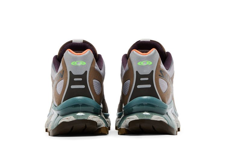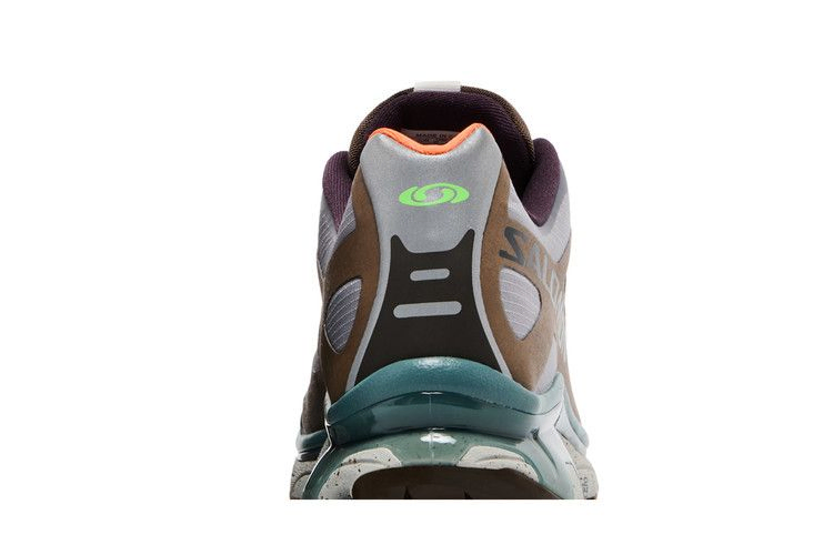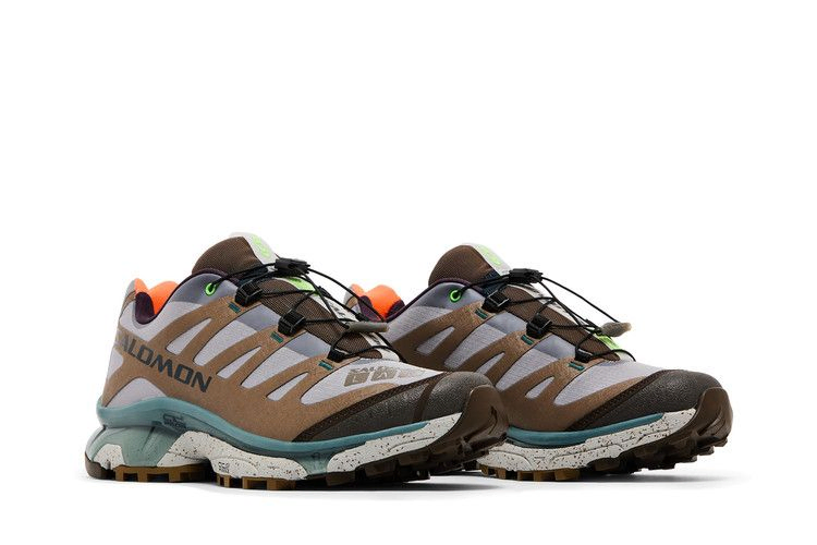 Модель Bodega x Salomon XT-4 OG 'The Glider' имеет сетчатый верх таупового цвета, усиленный светло-коричневыми синтетическими накладками и закрепленный системой Quicklace от Salomon. Земляные тона компенсируются текстильной подкладкой воротника контрастного сливового и оранжевого оттенков. Двойной брендинг расположен на носочной части, подчеркнутый графикой параплана на правом ботинке, и ремешок из тесьмы, проходящий по всей длине язычка. На межподошве красуются детали с крапинками, а подошва Contagrip имеет темно-бежевый цвет.