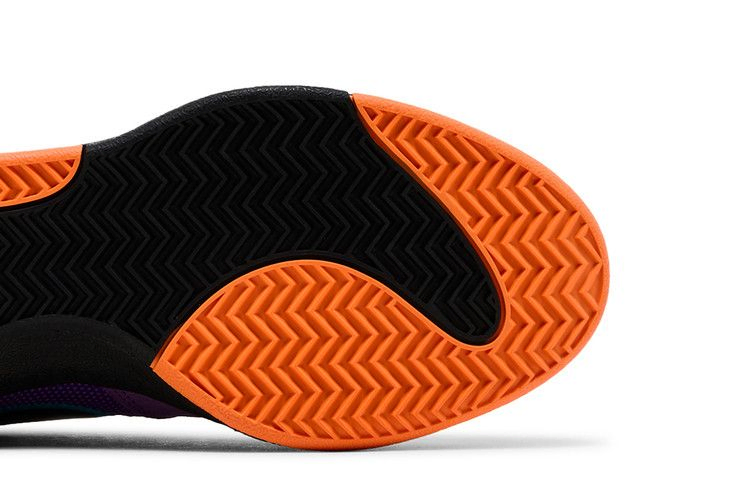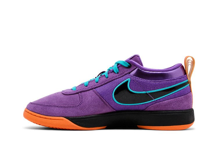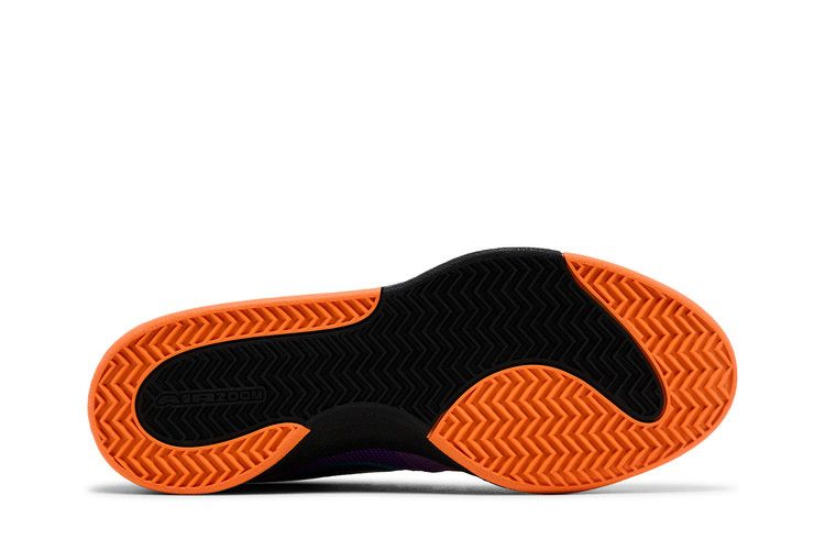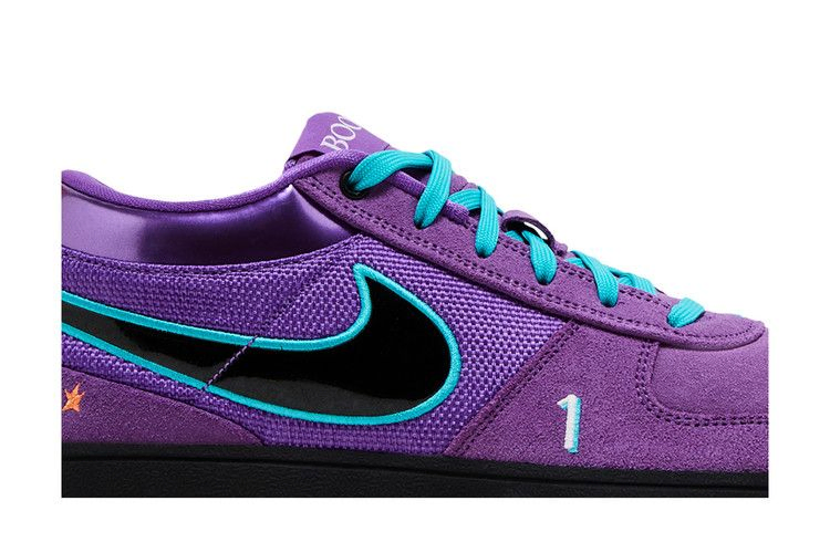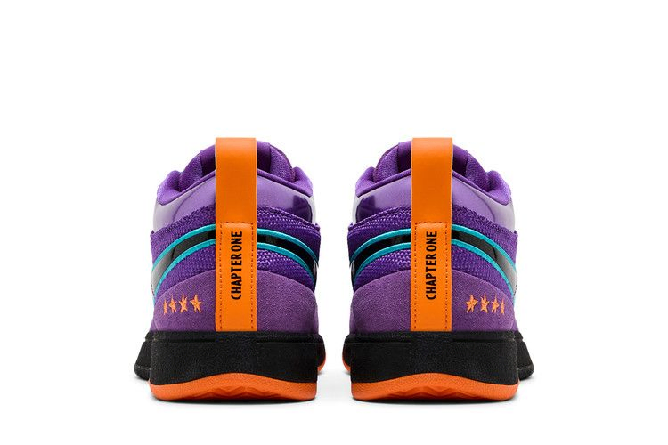 Модель Nike Book 1 "1995 All-Star" вдохновлена джерси, которые носили игроки Восточной конференции во время Игры всех звезд 1995 года, проходившей в том же году в Финиксе. Верхняя часть из смешанного материала, выполненная из замши, сетки и глянцевой кожи, окрашена в яркий фиолетовый оттенок. Вышивка цвета тила обрамляет черный лакированный логотип Swoosh, а квартет вышитых оранжевых звезд украшает боковую часть пятки. Дополнительные элементы брендинга включают язычок с надписью "Book" и номер футболки Девина Букера, вышитый на передней части стопы.