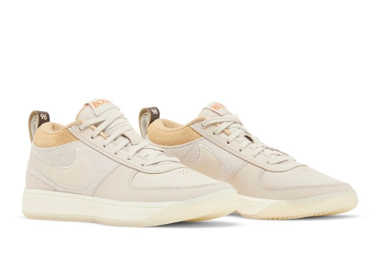Первые фирменные кроссовки Девина Букера Nike Book 1 Light Orewood Brown выполнены из кожи цвета слоновой кости с текстильными боковыми панелями. Мягкий воротник из бежевой замши с микроперфорацией обеспечивает удобную посадку, а многослойный выступ на пятке, вдохновленный корешком книги, облегчает надевание и снятие. Боковины из жесткого TPU, межподошва из пеноматериала Cushlon 2.0 и воздушный блок Zoom в пятке.