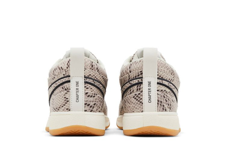 Модель Nike Book 1 "Python" украшена узором из змеиной кожи на всей поверхности кожаного верха и фирменным логотипом Swoosh с черной вышивкой. На тканом язычке написано "Book", а на язычке на пятке - "Chapter One" и "96", что указывает на год рождения Девина Букера. Кроссовки с подошвой из пеноматериала Cushlon 2.0, жесткой боковиной из TPU и нагруженным сверху блоком Zoom Air в пятке.