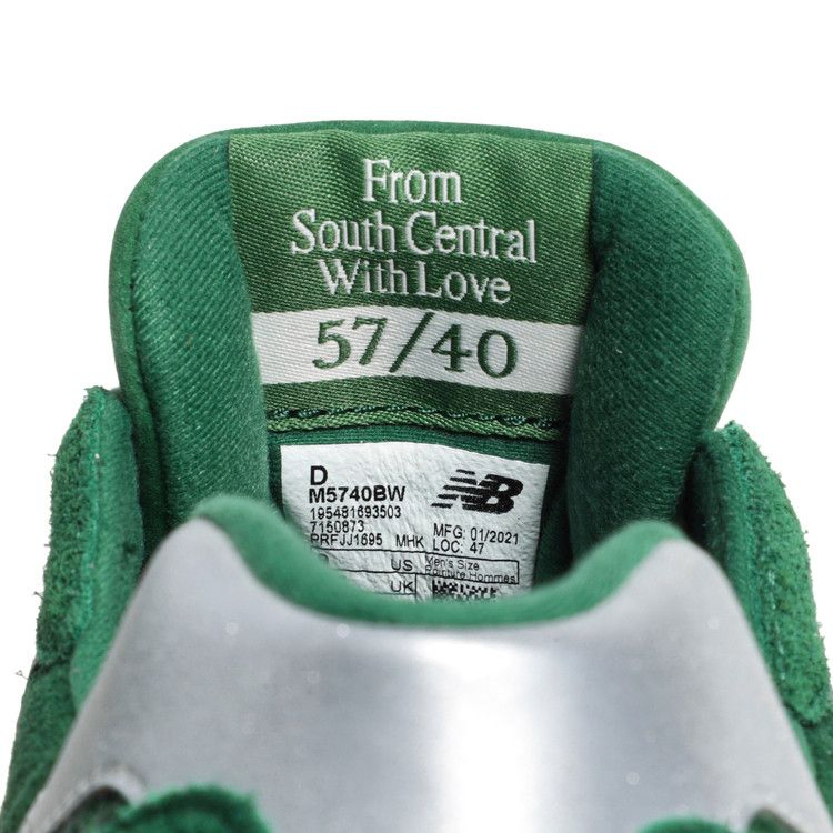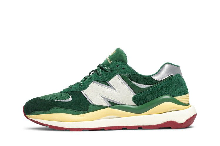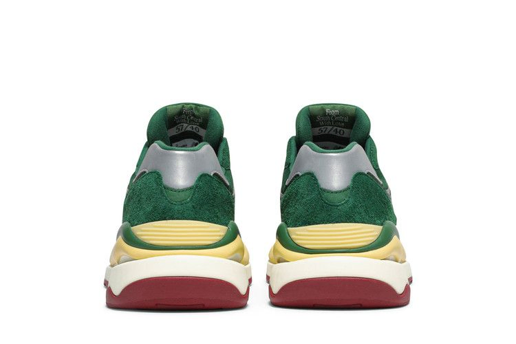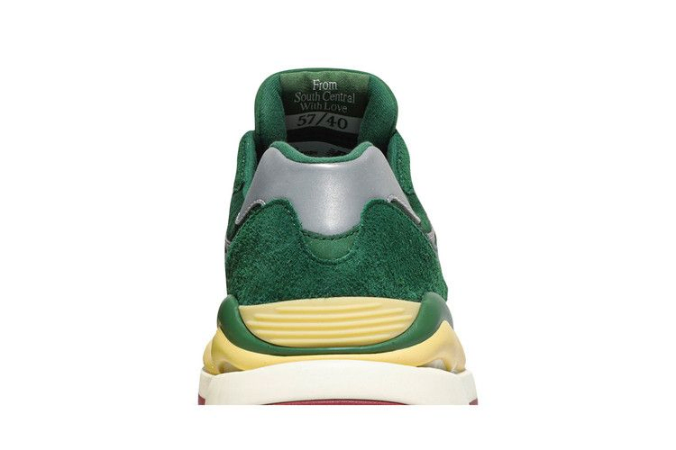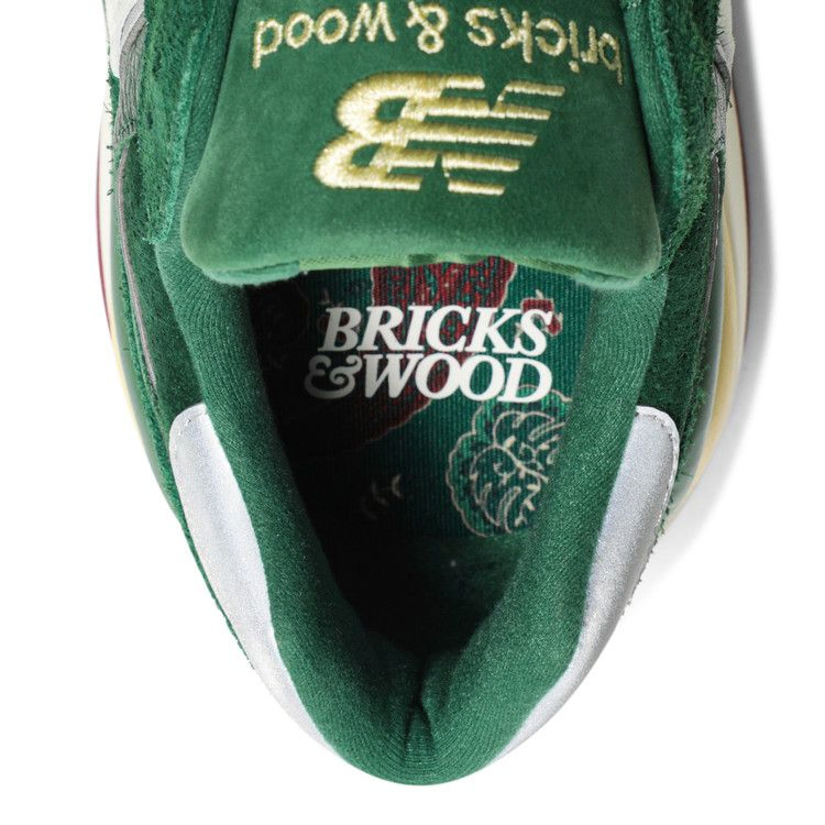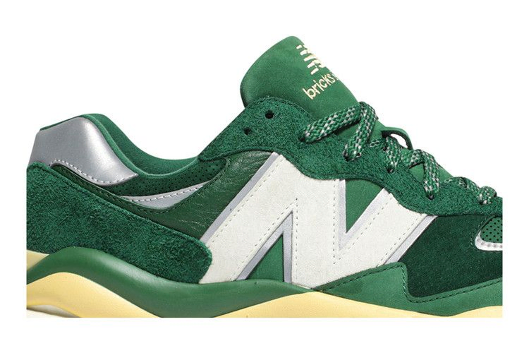 Модель Bricks & Wood x New Balance 57/40, созданная в сотрудничестве с лос-анджелесским брендом одежды, отличается яркой палитрой, вдохновленной южной частью центрального Лос-Анджелеса. Силуэт в стиле ретро выполнен из зеленой замши с микроперфорацией в области носка и воротника. Негабаритный логотип "N" выполнен из белой кожи, а на язычке пятки красуется серебристый металлик. Кроссовки опираются на пенополиуретановую подошву с темно-розовой резиновой подошвой.