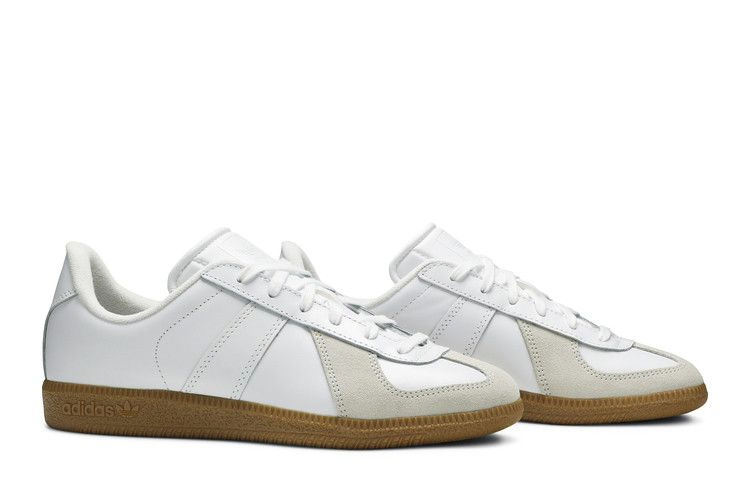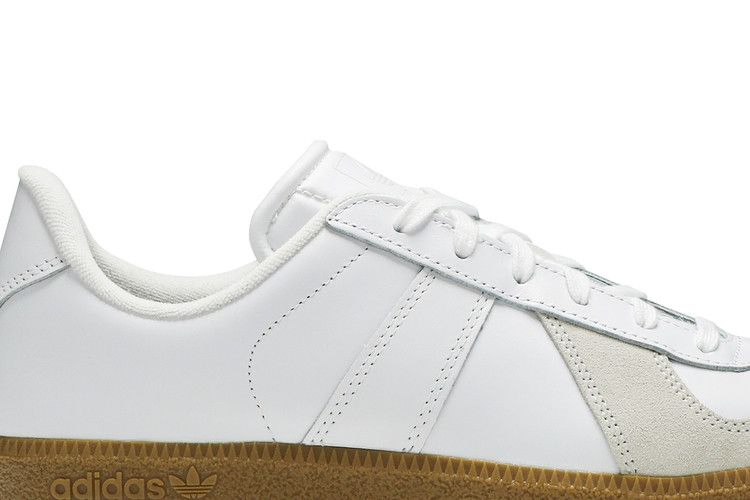Силуэт adidas BW Army, появившийся на прилавках в 2017 году, - это возвращение к винтажным немецким армейским кроссовкам прошлого. Низкие кроссовки выполнены из белой кожи с геометрической замшевой накладкой бежевого цвета на носке. Классический вид дополняет резиновая подошва с жевательной резинкой по всей длине.