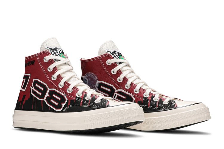 Модель Chinatown Market x Converse Chuck 70 High 'Bulls Championship Jacket' вошла в коллекцию из четырех предметов, созданную в сотрудничестве с лейблом уличной одежды из Лос-Анджелеса. Классический хай-топ с кожаным верхом и негабаритной графикой повторяет вид культовой куртки Джеффа Хэмилтона, игравшего в чемпионате NBA за команду Chicago Bulls в 98 году. Полупрозрачная нашивка All Star украшает медиальную сторону кроссовка, а брендинг Chinatown Market расположен на белом кожаном язычке и резиновом номерном знаке на левом ботинке.
