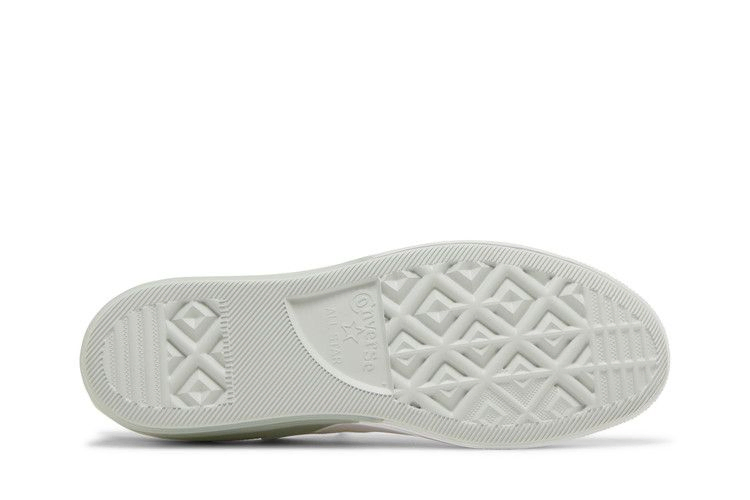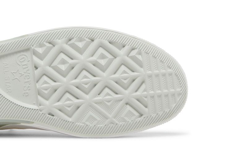 В модели Chuck Taylor All Star CX FlyEase 'Egret Light Silver' основополагающие кроссовки подверглись комплексному обновлению дизайна, в основе которого лежит революционная технология FlyEase от Nike. Верх кроссовок выполнен из белоснежного эластичного канваса, а пятка с измененной конструкцией складывается и отстегивается, позволяя надевать и снимать кроссовки без помощи рук. Полупрозрачная клетка зеленого цвета обвивает заднюю часть межподошвы, обнажая легкую амортизацию из пеноматериала CX. Подошва с рисунком, вдохновленным оригинальными Chuck Taylor, обеспечивает надежное сцепление с поверхностью.