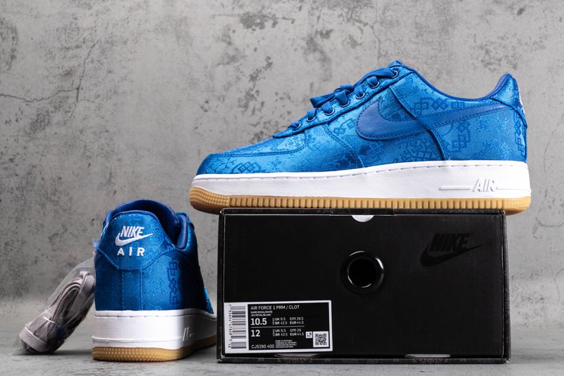 CLOT и Nike представили свои совместно разработанные «Royal Silk» Air Force 1 в ноябре 2019 года. Кроссовки пересматривают классику 1982 года с узорчатым шелковым верхом, который можно сжигать или стирать, открывая альтернативный дизайн после. Конструкция подошвы AF1 отличается фирменной пеной «AIR», скрывающей амортизацию Air-Sole. Резиновый протектор снизу приобретает традиционный повернутый узор. Ознакомьтесь с подробными фотографиями и закажите эту расцветку CLOT x Air Force 1 PRM Royal Silk в розничных магазинах или в сервисе Slamdunk- Цвета: University Blue/White-Gum
