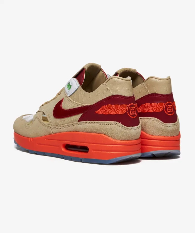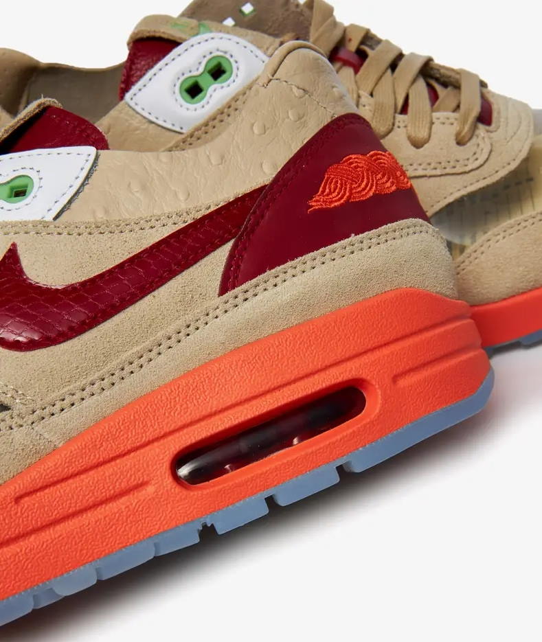 Переиздание 2021 года CLOT x Nike Air Max 1 «Поцелуй смерти» возрождает любимую фанатами расцветку, первоначально выпущенную в 2006 году. Как и оригинал, ретро-силуэт отмечен деконструированным коричневым замшевым верхом с прозрачными вставками на мыске и чешуйчатой текстурой на Swoosh. Пяточная накладка имеет оранжевый логотип CLOT на красном фоне, а полупрозрачная резиновая подошва демонстрирует рефлексотерапевтическую графику в новом дизайне.- Цвет: Net/Deep Red/Orange Blaze