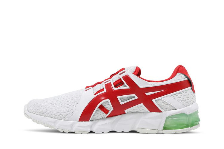Кроссовки Coca-Cola x ASICS Gel Quantum 90 "White" выполнены в фирменных цветах культового американского бренда напитков. Дышащий белый трикотажный верх частично изготовлен из переработанного полиэстера, а носочная часть окрашена с помощью технологии допинга, которая требует меньше краски и воды. С боковой стороны логотип Coca-Cola нанесен на среднюю часть стопы, которая также служит для брендирования кроссовок тигровыми полосами. Легкая конструкция поддерживается сплошной белой подошвой EVA с зеленой амортизацией Gel в пятке.
