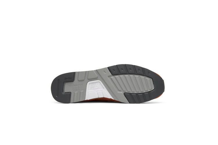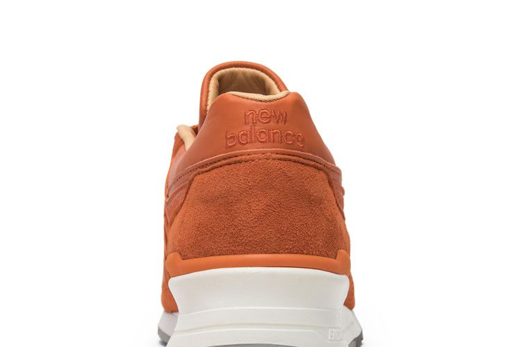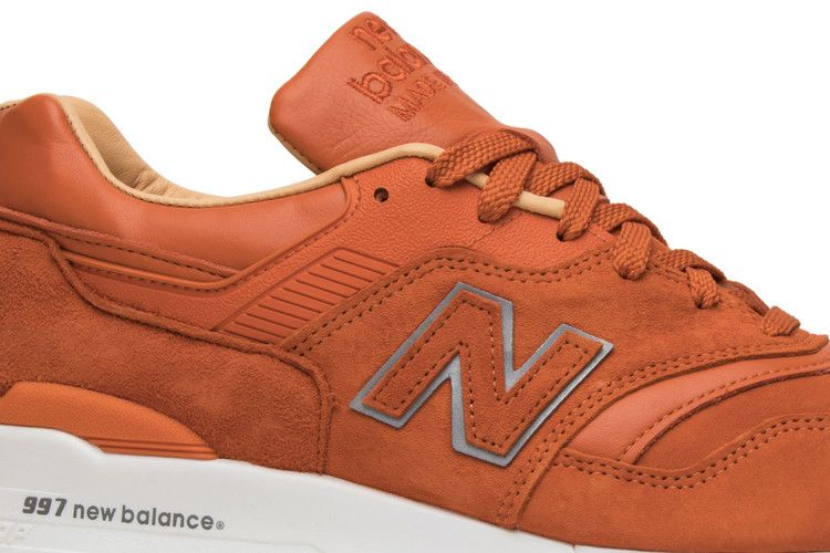 New Balance объединился с бостонским отделением Concepts, чтобы создать элегантную модель 997. Верх кроссовок из свиной замши окрашен в яркий оранжевый оттенок, а язычок и носок выполнены из роскошного кожаного текстиля, что придает им изысканный вид. Кроссовки изготовлены в городе Скоухеган, штат Мэн, и оснащены промежуточной подошвой ENCAP.