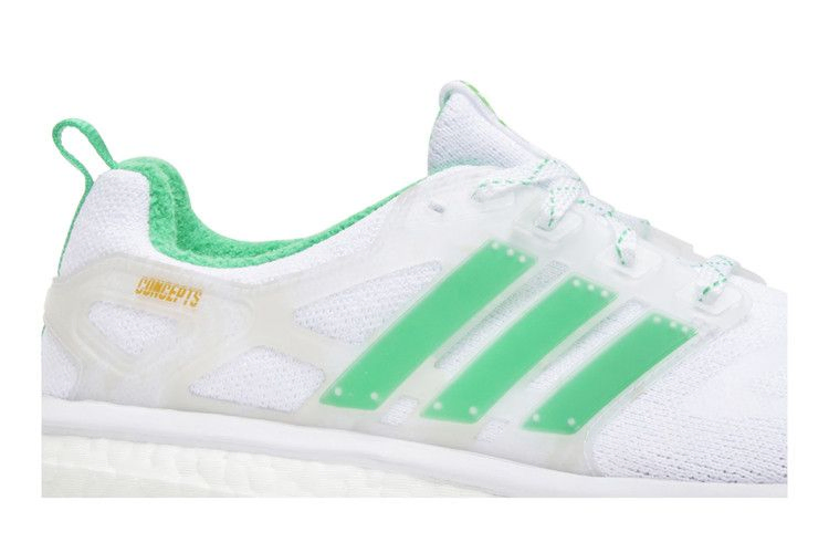 Бостонский бутик кроссовок Concepts объединился с adidas для создания Energy Boost 'Shiatsu'. В соответствии с юмористическим мотивом, присутствующим в других совместных работах брендов, махровая ткань на верхе символизирует халат премиум-класса. Зеленые акценты на трех полосках, носках и шнурках символизируют успокаивающие свойства нефритовых камней. Кроме того, при освещении черным светом на внешнем заднике пятки можно обнаружить мраморный элемент дизайна, что свидетельствует об обычном юморе Concepts.