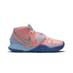 Созданные для баскетболистов, кроссовки Concepts x Nike Kyrie 6 Khepri Special Box обновляют шестую фирменную обувь Кайри Ирвинга яркими элементами брендинга по всей верхней части, выполненной из розовой сетки с голубым задником для фиксации пятки. Логотип Nike украшает ремешок в средней части стопы.