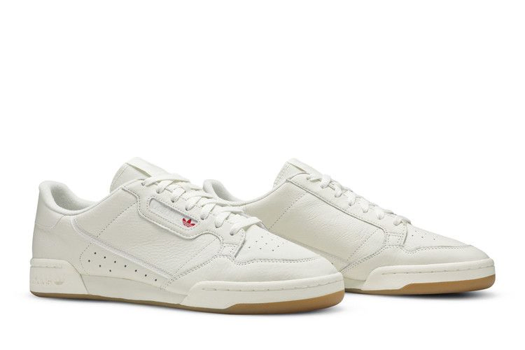 Кроссовки adidas Continental 80 "Off White Gum", вдохновленные закрытыми теннисными кроссовками 80-х годов, представляют собой современный комфорт в ретро-обстановке. Неяркий белый цвет покрывает почти весь верх, выполненный из мягкой, эластичной кожи, за исключением небольшого красного логотипа в виде трилистника возле шнурков. В ретро-стиле выдержана мягкая подкладка из французской махры и винтажная подошва из резины.