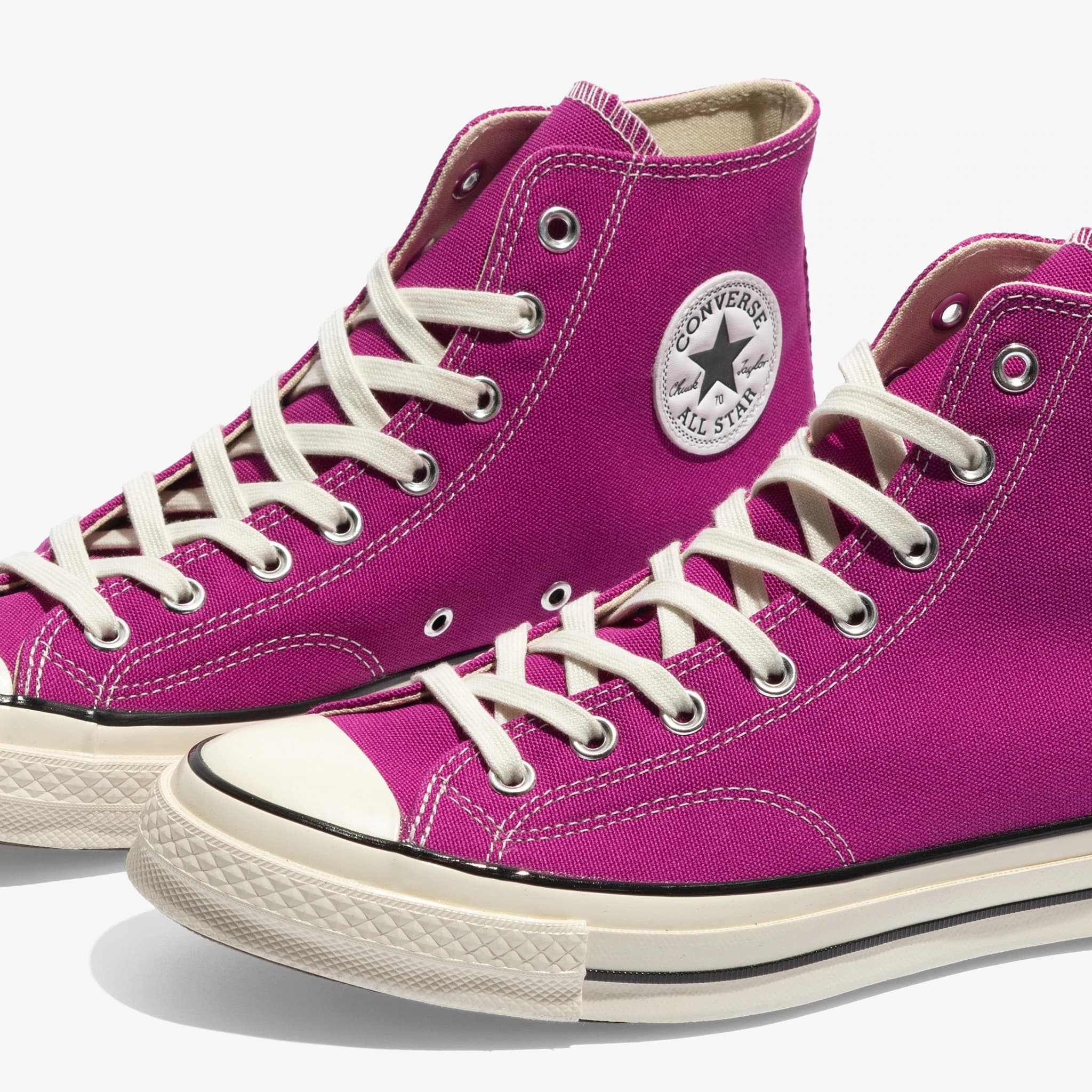 Напоминающая о своем наследии модель Converse Chuck 70 High Cactus Flower - это нестареющая культовая классика в лиловом исполнении с современными нотками. Сохранив знаковый холщовый верх и резиновую подошву, обновленный ретро-стиль сохранил свой стилизованный вид на протяжении столетия. Обтекаемый мысок на носке спереди способствует долговечности и придает непритязательный вид уличной одежде.