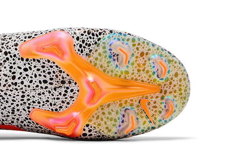 Модель CR7 x Nike Mercurial Vapor 13 Elite FG 'Safari' возвращает культовый принт, использовавшийся в классической расцветке Mercurial, которую носил Криштиану Роналду. Верхняя часть из фликнита с 360-градусным покрытием покрыта прочным материалом NIKESKIN, обработанным технологией All Conditions Control для уверенного прикосновения в сухих и влажных условиях игры. Пластина Nike Aerotrak в сочетании с жестким шасси и шевронными шипами обеспечивает превосходное сцепление на полях с короткой травой.
