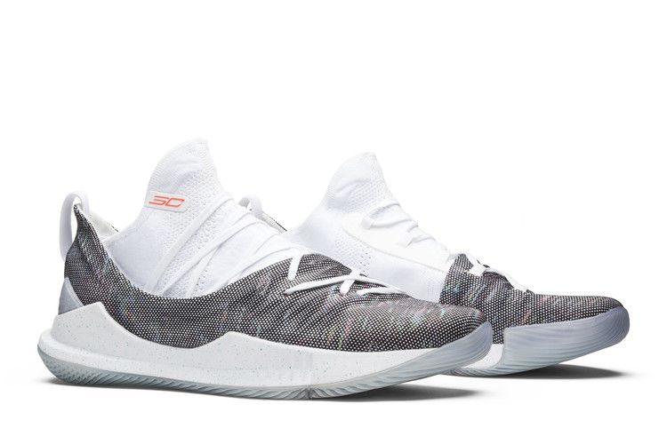 Икона хопса Стеф Карри известен своими прыжковыми бросками и универсальной игрой, не говоря уже о наградах MVP и трех титулах в составе команды Golden State Warriors. Модель Under Armour Curry 5, выпущенная к 30-летию звезды корта в марте 2018 года, получила цветовое обновление в мае того же года. Модель имеет белый трикотажный верх с разноцветными накладками и перчаточную посадку. Под ногами - промежуточная подошва EVA, обеспечивающая возврат энергии и амортизацию.