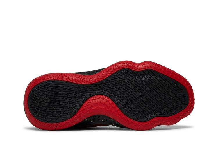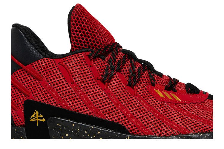 adidas Dame 7 "Chinese New Year" обновляет седьмую фирменную обувь Дамиана Лилларда, создавая праздничную цветовую гамму в честь лунного праздника. Интегрированная система шнуровки фиксирует черный текстильный верх, покрытый открытой алой сеткой и усиленный синтетическим нубуком для дополнительной поддержки и долговечности. Золотисто-металлические вкрапления выделяют черную промежуточную подошву Lightstrike, которая переходит в прочную резиновую подошву с разнонаправленным рисунком сцепления.