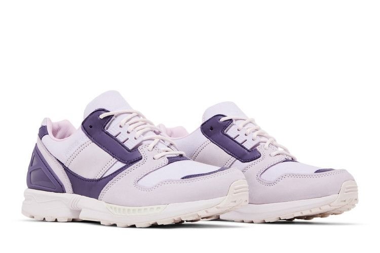 Совместная работа с берлинским креативным агентством deadHYPE x adidas ZX 8000 "Thanos" взята из серии A-ZX, коллекции из 26 частей, которая исследует франшизу беговых кроссовок, изначально начатую в 1984 году. Этот пастельный вариант ретро-силуэта выполнен в лавандовых и фиолетовых тонах из текстиля и кожи, закреплен веревочными шнурками и укреплен TPU-стойкой на пятке. В спартанском дизайне брендинг удален с язычка, а фирменные три полоски adidas заменены одной кожаной накладкой.
