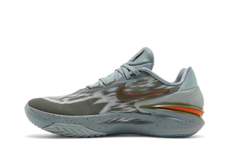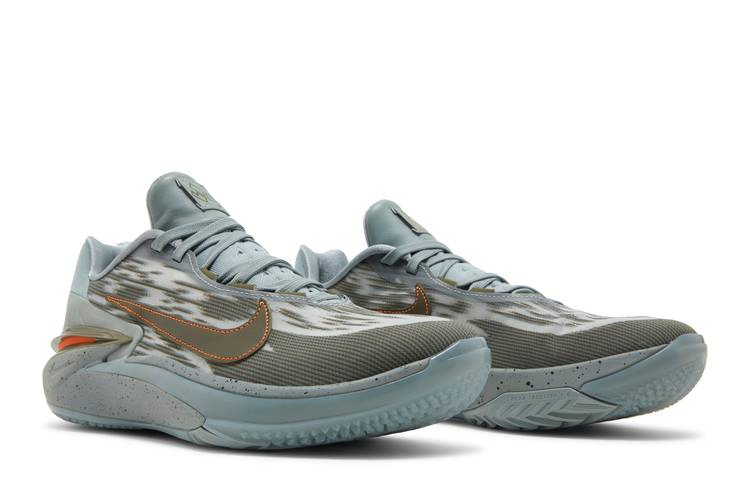 Модель Devin Booker x Nike Air Zoom GT Cut 2 'Hike' представляет собой специальное издание, созданное специально для звезды НБА. Полосы зеленого и оливкового цветов оживляют серый текстильный верх, а контрастные оранжевые детали выделяют жесткую пятку. На несовпадающих язычках нанесены надписи "BOOK" и "Keep It Tight". В качестве вспомогательных элементов используются стелька Nike React, параболический Air Zoom Strobel и пружинящий блок Zoom Air, расположенный в пяточной части межподошвы из пеноматериала. Резиновая подошва с полым рисунком "елочка" обеспечивает сцепление с дорогой.