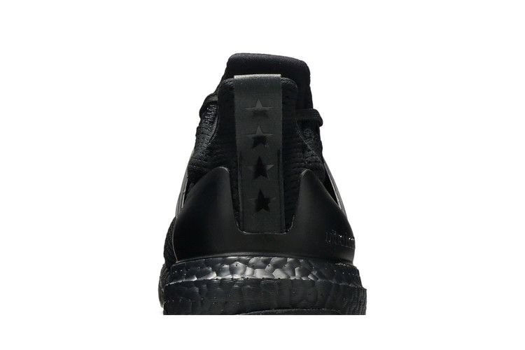Модель DFB x adidas UltraBoost DNA 'Triple Black' посвящена сборной Германии по футболу и выполнена в неприметном однотонном цвете. Верх кроссовок из полностью черного материала Primeknit изготовлен из переработанного пластика Parley Ocean Plastic и нетронутого полиэстера. Четыре тональные звезды нанесены на тесьму на пятке, а язычок украшен полупрозрачным гербом сборной. Чувствительная амортизация обеспечивается полноразмерной промежуточной подошвой Boost, окрашенной в черный цвет и поддерживаемой резиновой подошвой Stretchweb Continental.