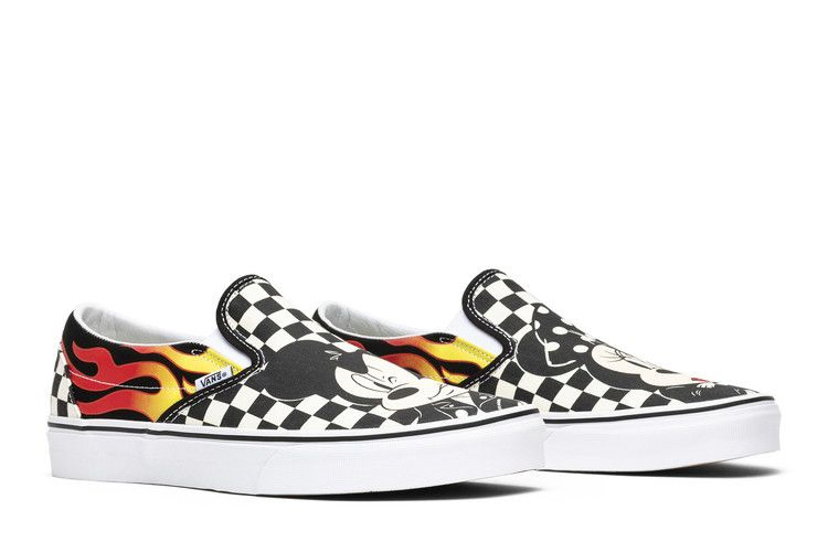 Опираясь на богатый архив дизайнов Микки Мауса, Disney и Vans объединили свои усилия, чтобы отпраздновать 90-летие легендарного персонажа. Модель Disney x Slip-On 'Mickey & Minnie' имеет канвасовый верх, выполненный в черно-белой клетчатой цветовой гамме. Низкая модель также может похвастаться рисунком пламени на боковых панелях, мягким воротником для комфорта, большой головой Микки Мауса, напечатанной на носке, и вулканизированной подошвой для гибкости и превосходного сцепления.