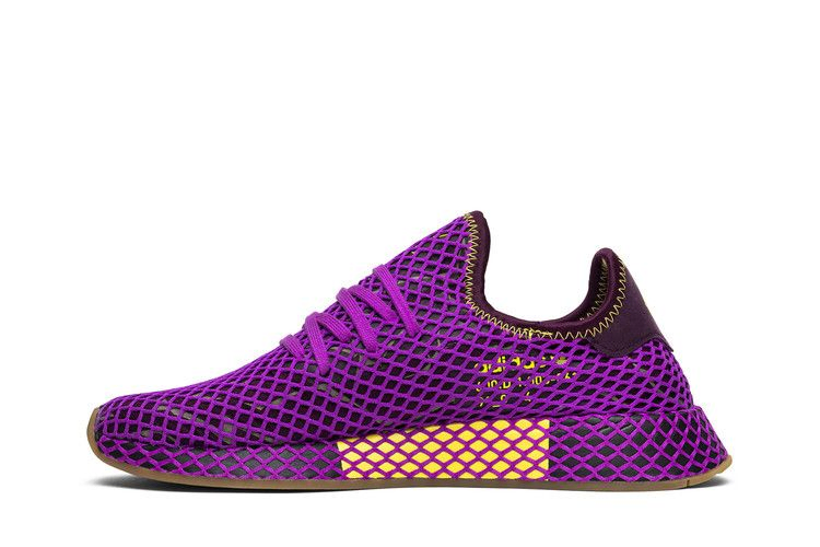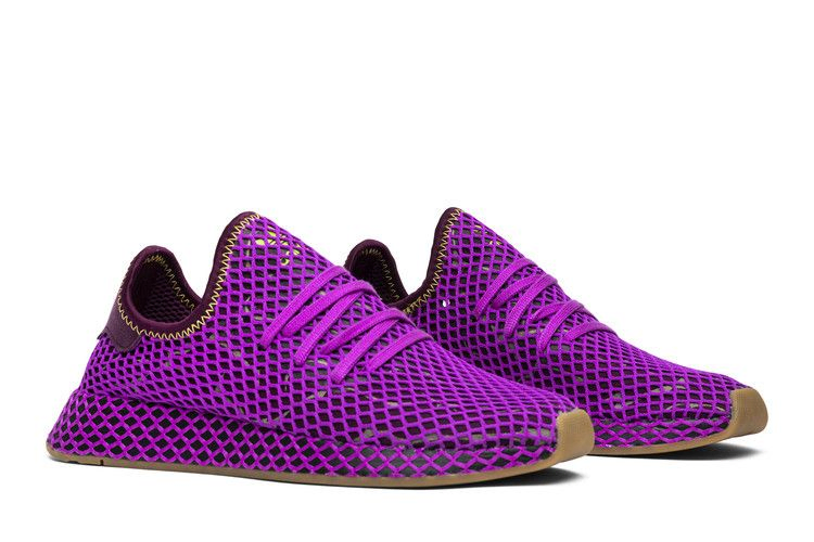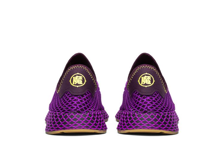 Эта специальная модель Deerupt выпущена в рамках сотрудничества adidas с манга-аниме Dragon Ball Z. Тональный фиолетовый цвет кроссовок вдохновлен боевым костюмом персонажа Сон Гохана. Под фирменной накладкой в виде паутины на силуэте скрывается светоотражающая графика в виде вспышек, отсылающая к трансформации персонажа в форму Super Saiyan 2. На пятке - детали кандзи, обозначающие имя Сына Гохана, а подошва из резины напоминает обувь персонажа.