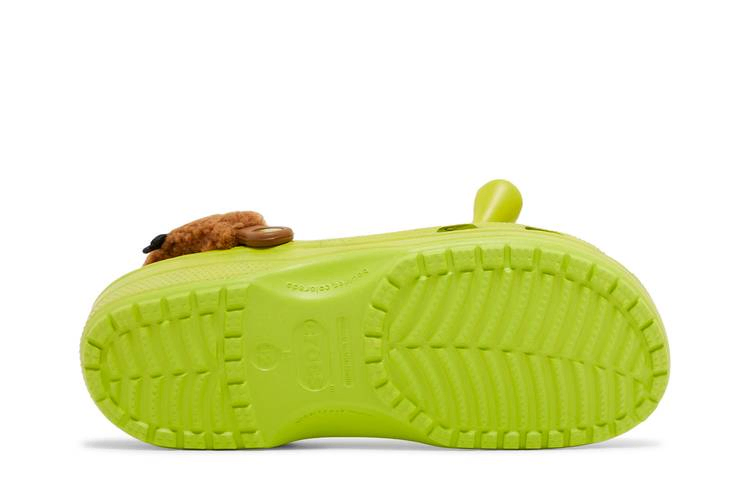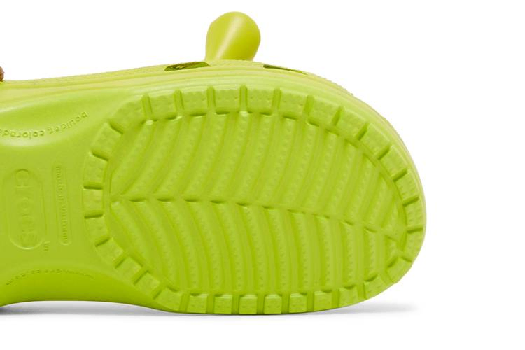 DreamWorks x Crocs Classic Clog 'Shrek' отдает дань уважения мультипликационному людоеду, озвученному Майком Майерсом. Зеленый цвет лица Шрека воссоздан на легкой пенной подошве, а брелоки Jibbitz напоминают нос и оттопыренные уши персонажа. Вентиляционные отверстия улучшают воздухопроницаемость, а меховой коричневый вращающийся ремешок на пятке обеспечивает надежную фиксацию. Брендинг Шрека присутствует на стельке с текстурированным верхним слоем, предназначенным для фиксации стопы.