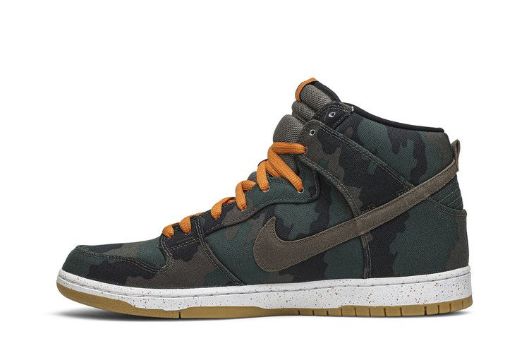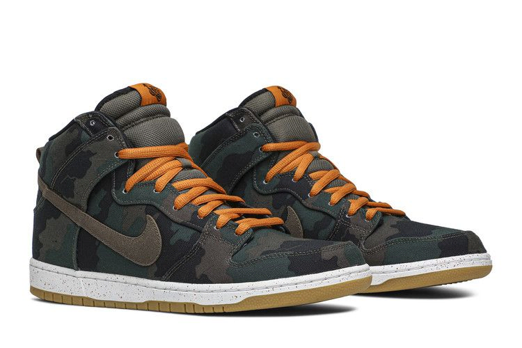 Этот выпуск Dunk High Premium SB был выпущен в сотрудничестве с 510, скейт-магазином Bay Area, который начал работать в Беркли в 1998 году. Силуэт с высоким верхом выполнен из канваса с камуфляжным принтом, а оранжевые детали на шнурках и крапчатая межподошва привносят яркие оттенки. На язычке красуется фирменный знак 510, а пятка оснащена блоком Zoom Air.