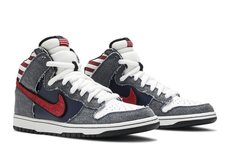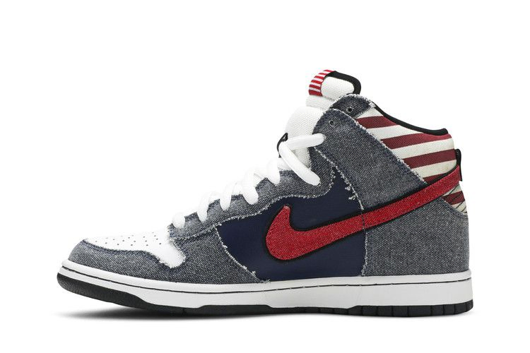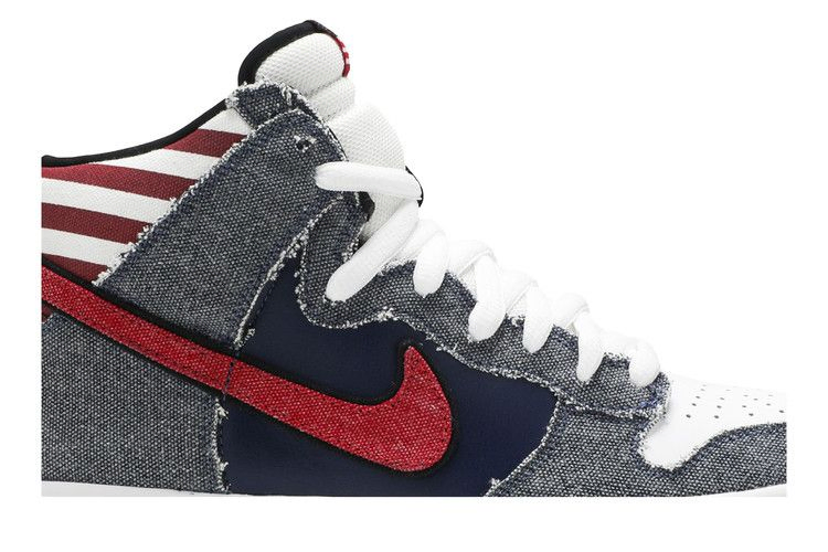 В июле 2010 года Nike SB выпустил модель Dunk High в американском стиле. Классические высокие кроссовки выполнены из смешанных материалов, начиная с белой кожаной носочной части и темно-синей кожаной четвертной панели. Потертые синие джинсовые накладки контрастируют с красным джинсовым логотипом Swoosh, а патриотическую тему продолжают язычок с американским флагом и красно-белые полоски вокруг воротника.