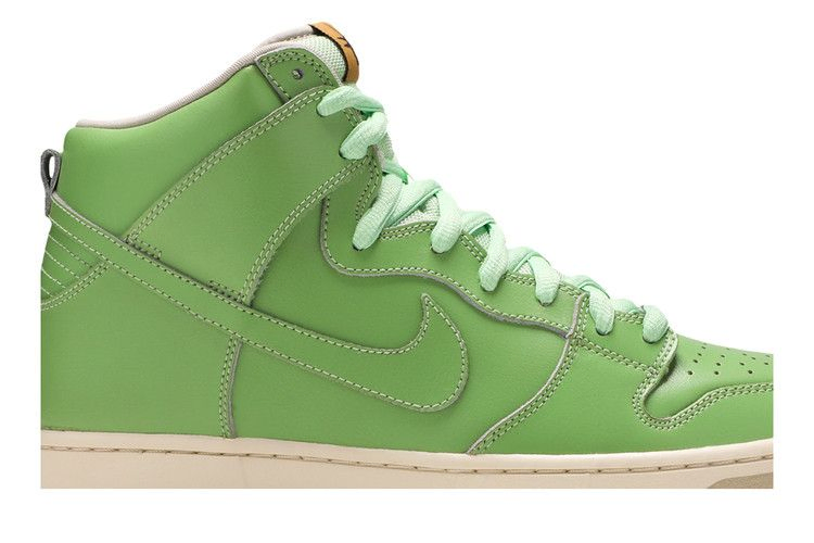 Специальное издание Nike "Statue of Liberty" Dunk High Premium SB имеет меняющий цвет мятно-зеленый верх на винтажной подошве Sail. Когда верхний слой обуви царапается, под ним появляется медный цвет. Это символизирует реальное окисление, которое происходит на статуе из железа и меди. Фирменные детали включают значок Леди Свободы на языке и графику на стельке.