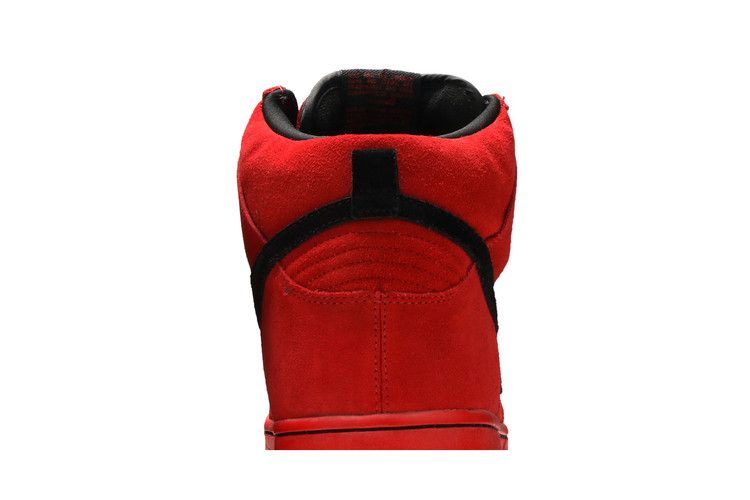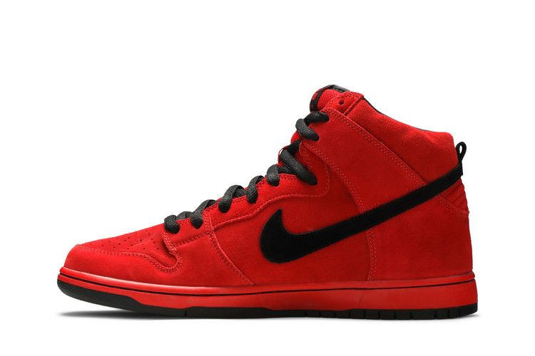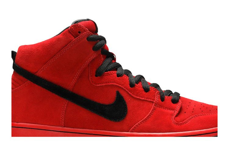 Переделанные для скейтбордистов, Nike Dunk High Pro SB оснащены стелькой Zoom Air и прочной конструкцией. Модель Red Devil полностью выполнена из замши цвета Sport Red, поддерживается тональной промежуточной подошвой и контрастирует с черными акцентами на Swoosh, внутренней подкладке, шнурках и подошве.