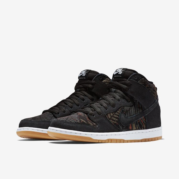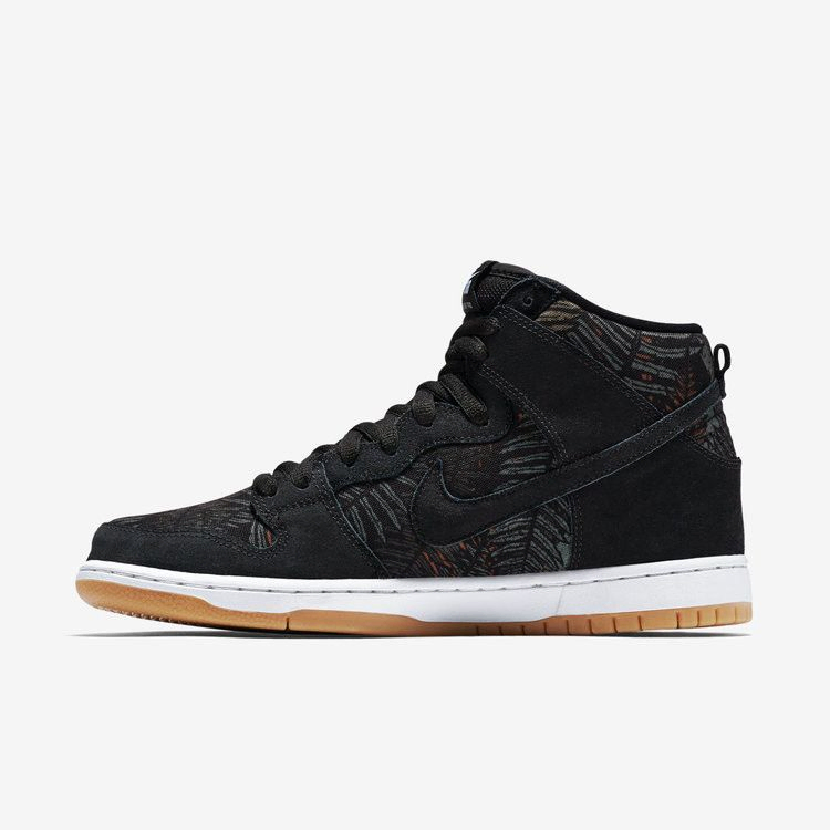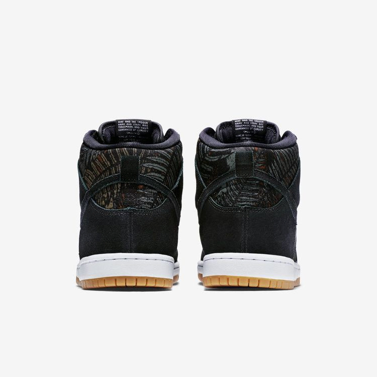 Модель 2015 года Nike Dunk High Pro SB 'Rainforest' украшена узором из листьев на холщовом верхе, а также черными замшевыми накладками и сетчатым язычком. Высокие скейтбордические кроссовки также оснащены амортизацией Nike Zoom Air в пятке и носочной части, белой подошвой и резиновой подошвой.