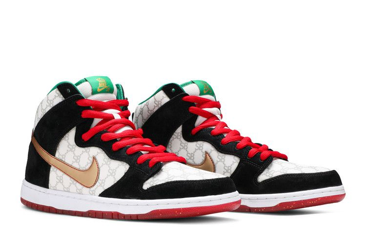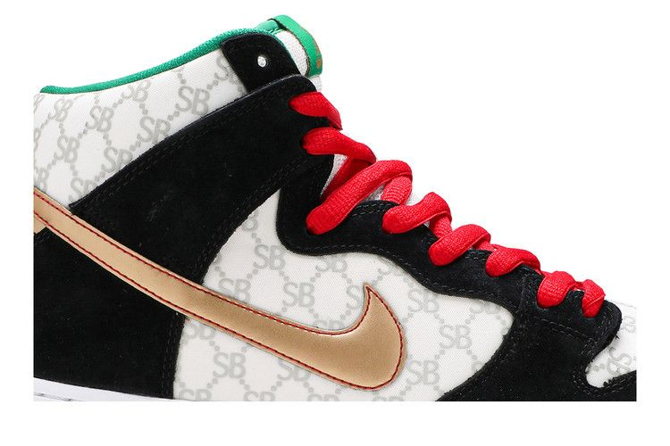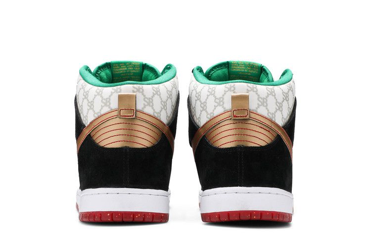 Black Sheep x Nike Dunk High SB 'Paid In Full' отдает дань уважения признанной критиками песне Rakim и Eric B. Кроссовки, отмененные сразу после презентации, ссылаются на пиджаки Dapper Dan, которые легенды хип-хопа носили на обложке заглавного альбома, с монограммой 'SB'. Золотисто-металлические свуши и толстые шнурки символизируют их фирменные веревочные цепи дуки, а зеленая внутренняя отделка и нашивка на языке символизируют фон долларовых купюр.