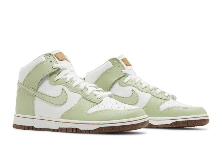 Выпущенные в рамках коллекции Nike "Inspected by Swoosh", Nike Dunk High SE "Honeydew" имеют цвета и детали, вдохновленные ликерами ручной работы. Верх из текстурированной кожи сочетает белую основу Summit White с бледно-зелеными накладками и контрастной строчкой Swoosh, подобранной по цвету. На внутренней стороне кроссовка имеется специальная маркировка "Inspected by Swoosh". Верхняя часть кроссовок опирается на белую промежуточную подошву с простроченными боковыми стенками и резиновой подошвой с пробковым напылением.