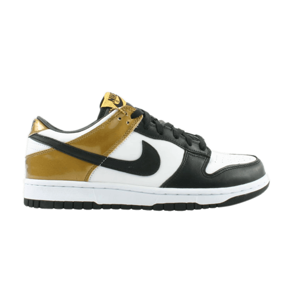 Эта модель Nike Dunk появилась в 2005 году, обновив классические кроссовки с металлическим золотом. Классические кроссовки появились в 1985 году благодаря многочисленным школьным расцветкам, которые позволяли спортсменам координировать свои спортивные костюмы. Эта версия сверкает золотыми деталями, дополненными черными и белыми панелями. Прочная подошва и резиновый протектор усиливают стиль.