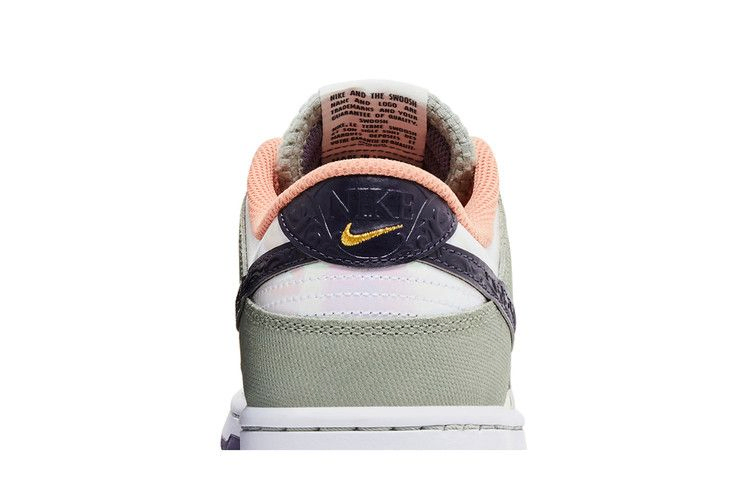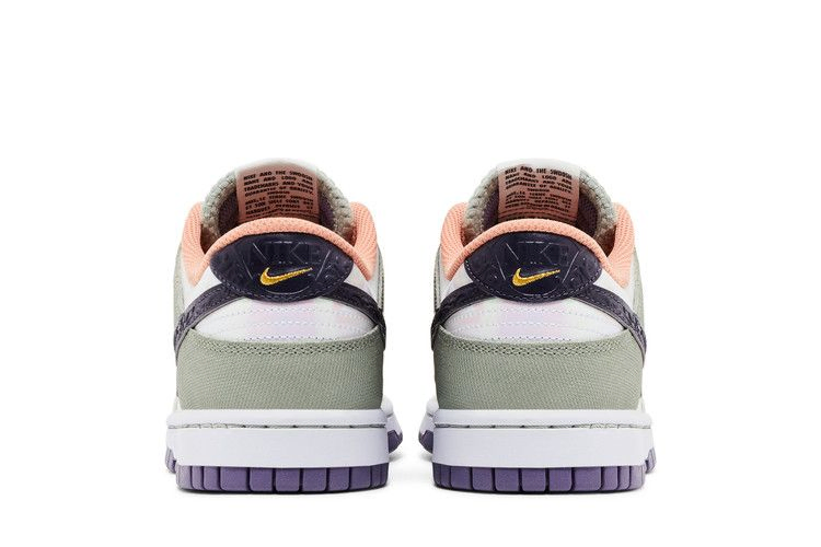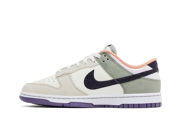Nike Dunk Low SE 'NOLA' демонстрирует цвета и текстуры, вдохновленные историческим Французским кварталом Нового Орлеана. Верхняя часть кроссовок выполнена из белой кожи с текстильными накладками контрастных оттенков Light Bone и Jade Horizon. Фиолетовые кожаные акценты с тисненым цветочным узором расположены на заднике и фирменном значке Swoosh от Nike. Дополнительные уникальные детали включают перламутровую отделку на воротнике и язычок с плетеной конструкцией. Подошва из светло-фиолетовой резины обеспечивает надежное сцепление с поверхностью.