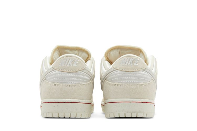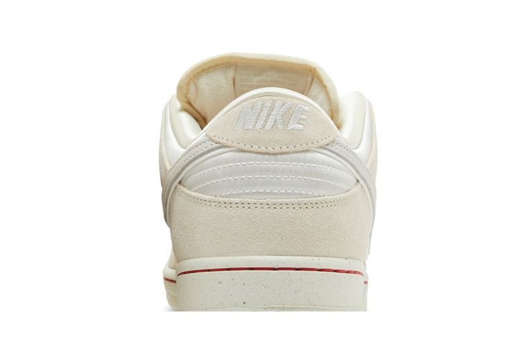 Представляя собой половину коллекции "Город любви", Nike Dunk Low Premium SB "Light Bone" сочетает в себе роскошные материалы и тональный дизайн. Верхняя часть из белого атласа с накладками из замши цвета слоновой кости на носке и пятке. Монохромная цветовая палитра поддерживается благодаря накладке Swoosh из кожи. Графическая стелька с изображением двух рук, связанных красной нитью вокруг мизинца, напоминает мифическую красную нить судьбы. Тема повторяется в красной строчке, опоясывающей белую резиновую подошву.