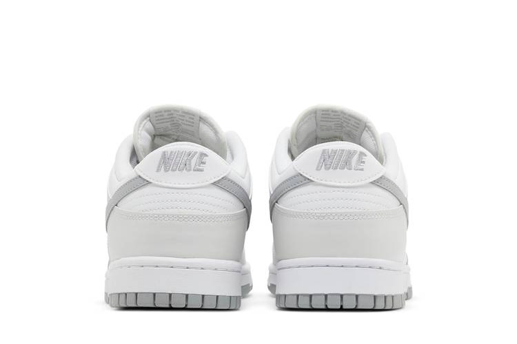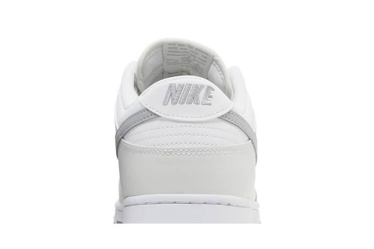 Модель Nike Dunk Low "Summit White Light Smoke Grey" имеет полностью кожаный верх мелового белого цвета с бледно-серыми накладками на носочной и пяточной частях. Более темный оттенок серого выделяет фирменный логотип Swoosh, а также брендинг Nike на тканом язычке и заднике. Кроссовки опираются на резиновую подошву с белыми боковинами и серой резиновой подошвой с высоким коэффициентом сцепления.