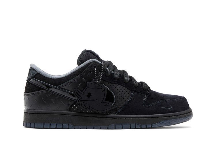 Модель Dunk Low "What the Duck - University of Oregon Alternate" PE посвящена традиции футбольного университета Орегона носить уникальную форму на каждой игре. Кроссовки переосмыслены с помощью полностью черной расцветки, вдохновленной интенсивностью, силой и производительностью Орегона на поле. Детали включают в себя замшевые накладки, панели пятки из зернистой кожи, принт слона на язычке пятки и лакированную кожу на средней части стопы Swoosh. Брендинг "DOAF", созданный в партнерстве с организацией Ducks of a Feather на Дивижн-стрит, расположен на левом язычке, правом язычке и прозрачной подошве.