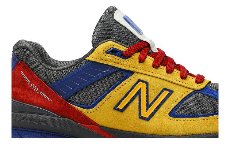 Кроссовки EAT x New Balance 990v5, представленные эксклюзивно в Shoe City в ноябре 2019 года, переосмыслены в фирменных оттенках балтиморского бренда уличной одежды. Сетчатый верх кроссовок уступает место замшевым панелям из свиной кожи основных цветов, формованным синтетическим полоскам и устойчивому креплению пятки. Двухцветные нашивки 'N' украшают боковые стороны, а на язычке и стойке красуется фирменный брендинг. Отличительная палитра повторяется на промежуточной подошве Encap и резиновой подошве.