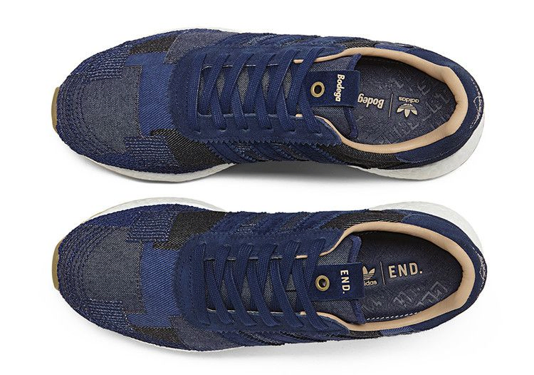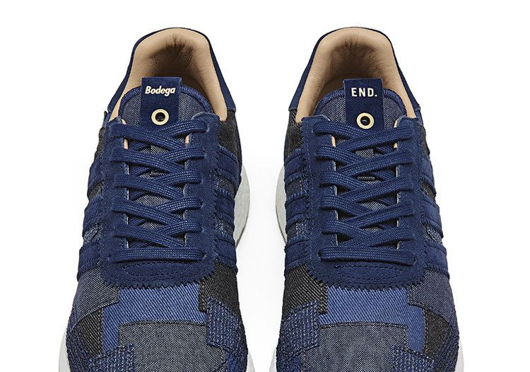 Эта модель END. x Bodega x Iniki Runner - это коллаборация Adidas Consortium Sneaker Exchange между английским ритейлером мужской одежды END и бостонским бутиком уличной одежды Bodega. Модель выполнена из синего джинсового материала в стиле пэчворк, вдохновленного японской техникой "боро", с прострочкой "сашико" на носке. Кроссовки также имеют кобрендинг на язычке, подкладку из кожи цвета загара, белую промежуточную подошву Boost и резиновую подошву. Модель вышла в июле 2017 года вместе с моделью 'END. x Bodega x Haven'.