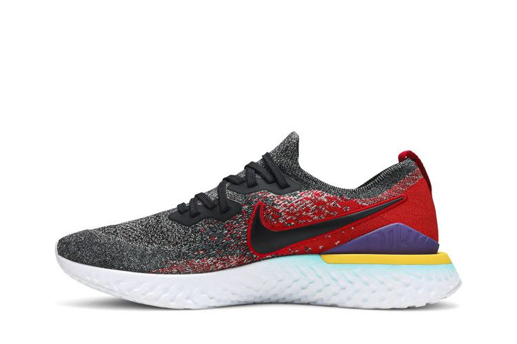 Nike Epic React Flyknit 2 "Black University Red" были выпущены в мае 2019 года. Эти легкие кроссовки имеют анатомическую форму воротника и эластичную конструкцию из дышащего и гибкого материала Flyknit, который облегает стопу как перчатка. Мягкая, отзывчивая пена React и сцепление с поверхностью обеспечивают максимальную отдачу энергии.