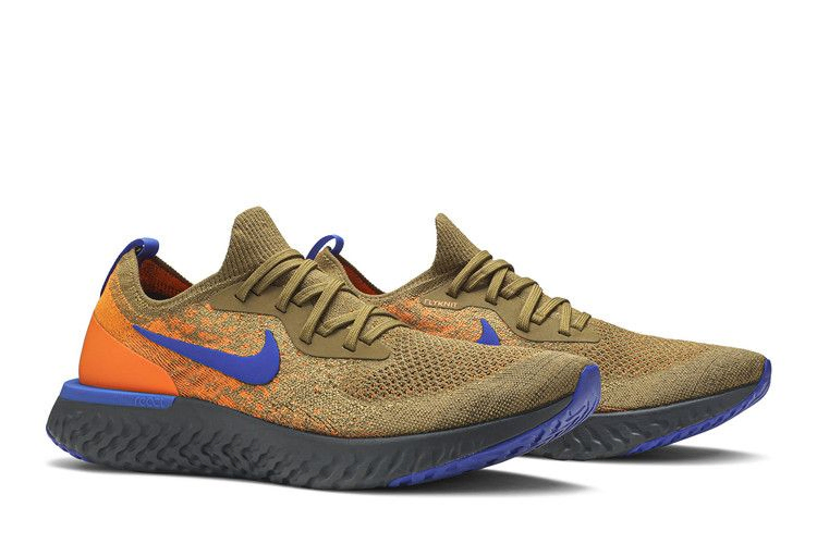 Модель Epic React Flyknit от Nike выполнена в том же цветовом решении, что и культовые Air Mowabb, которые были представлены в коллекции ACG в 1990-х годах. Верх кроссовок выполнен из золотисто-бежевого флайкнита, а акценты Total Orange и Racer Blue присутствуют на брендинге и бесшовных накладках. Промежуточная подошва Epic React обеспечивает легкую амортизацию.