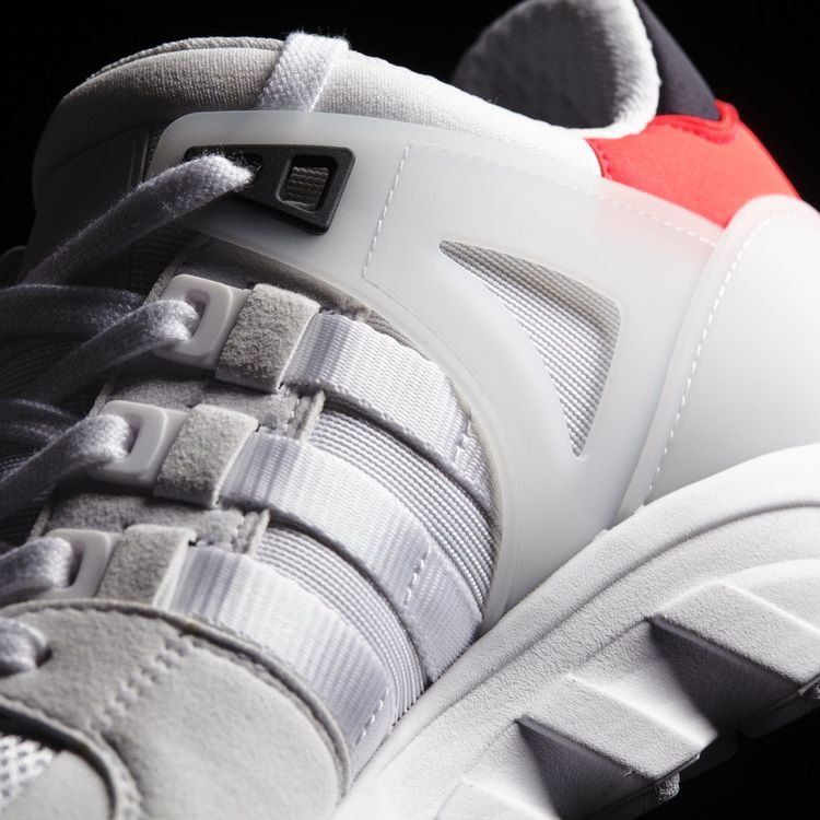 Модель adidas EQT Support RF возрождает наследие беговой серии Equipment 90-х годов, демонстрируя классическую громоздкую эстетику с белыми сетчатыми и замшевыми панелями по всей верхней части. Красные вставки Turbo Red на четверти и пятке привносят цвет в образ, а фирменная символика Three-Stripes использована в дизайне люверсов. Система Torsion обеспечивает поддержку стопы.